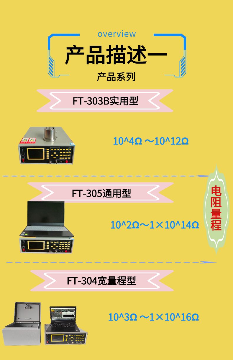 在絕緣材料行業中電阻率的測量是衡量材料品質的重要指標,橡膠,塑料以及衍生品的薄膜,布料,等已經產品的應用不同,有些表面應用時需要測量表面電阻率,有些整體性應用時,需要測量體積電阻率數據,被制作和加工成各式各樣的產品.