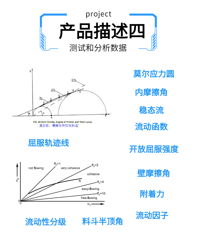 這些影響粉體流動性的行為特征通過測量粉體內(nèi)部強度、流動函數(shù)、摩擦函數(shù)、密度、時間函數(shù)等數(shù)據(jù)定量分析上述現(xiàn)象和狀態(tài).
