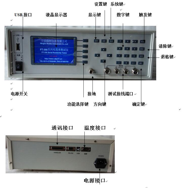 2、液晶顯示: 電阻率、壓強、溫度、電導率、電流電壓、可輸入測試樣品數據(圓柱:直徑,高度;方體:長*寬*高)單位可以切換(mm、cm、m)