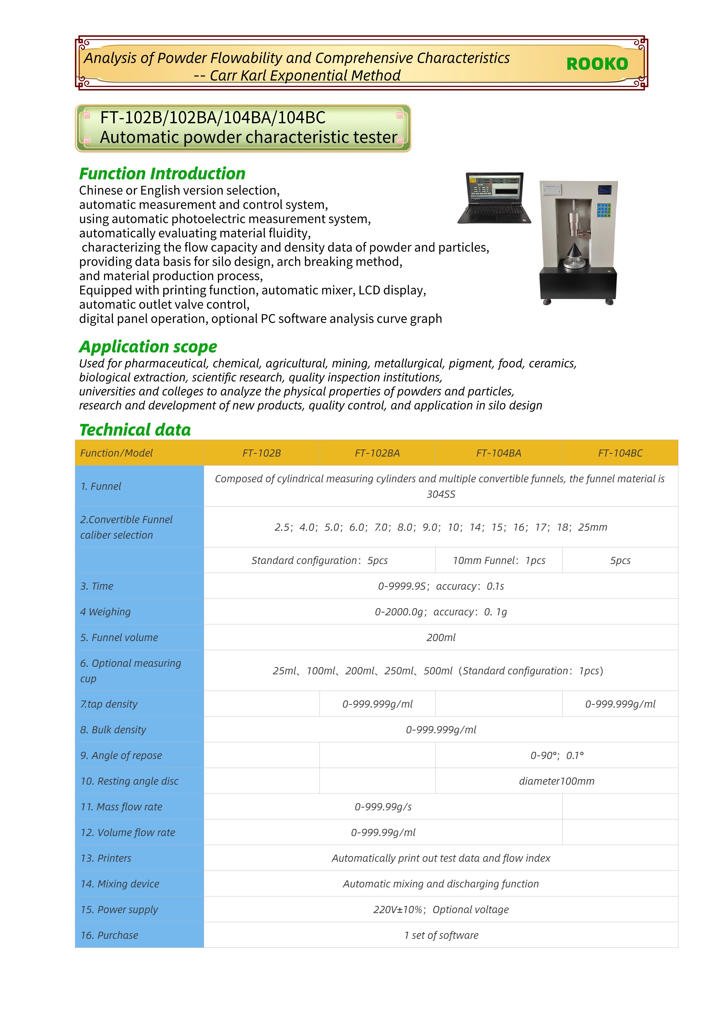 FT-102B 102BA 104BA 104BC粉體特性測試儀
