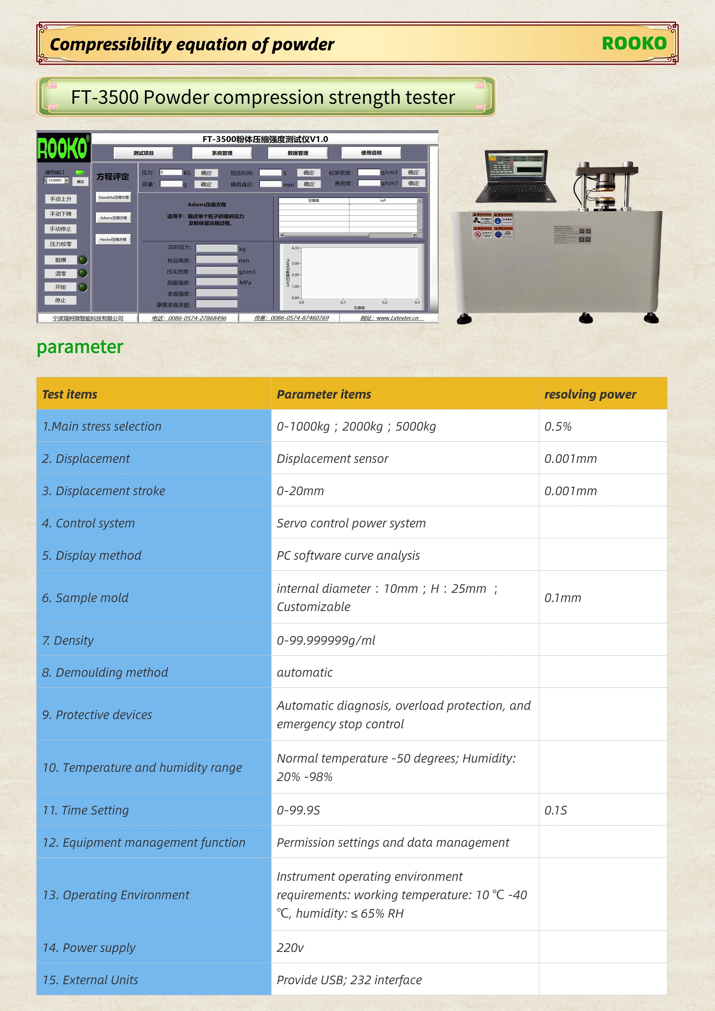 FT-3500 Powder compression strength tester