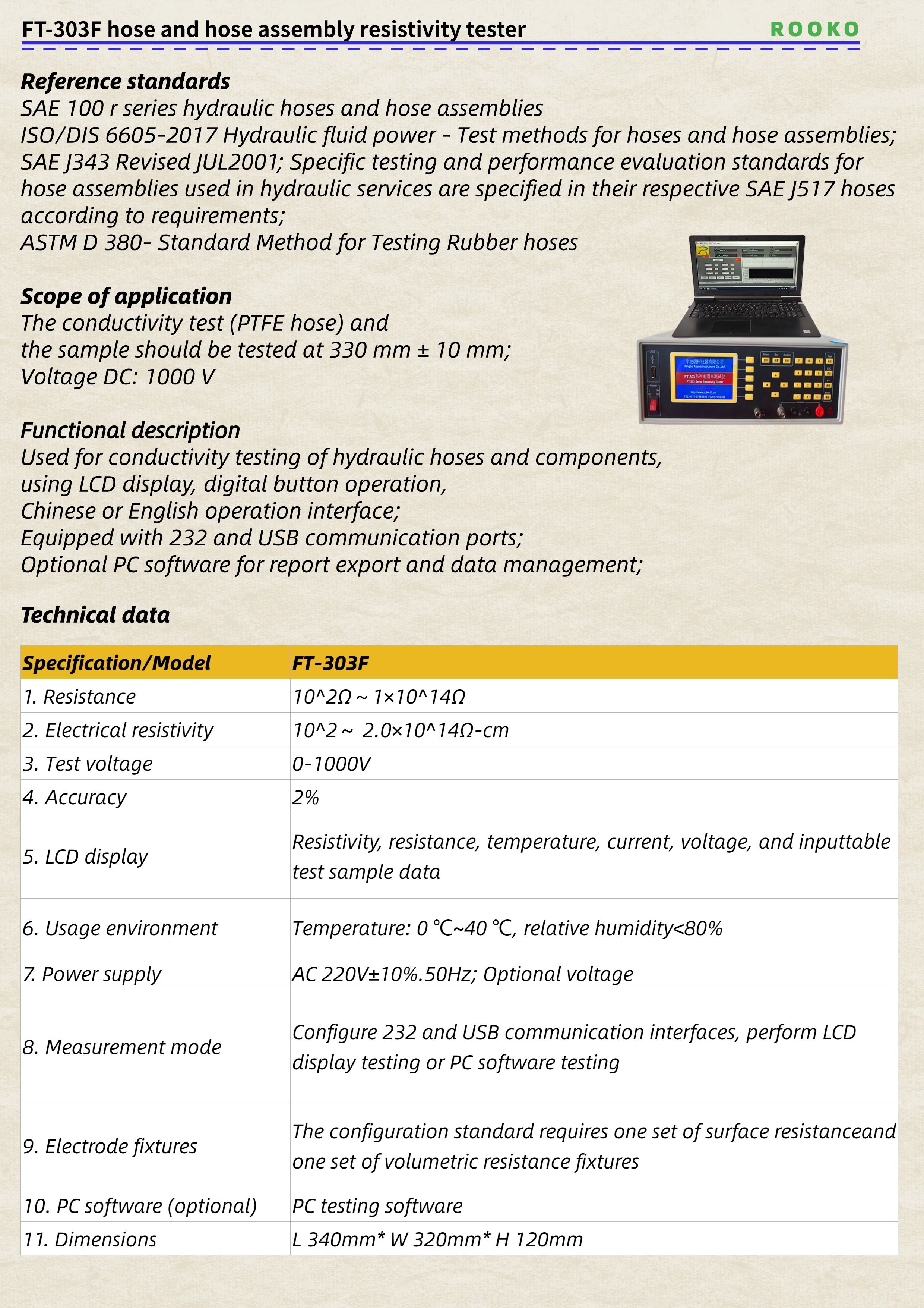 FT-303F hose and hose assembly resistivity tester
