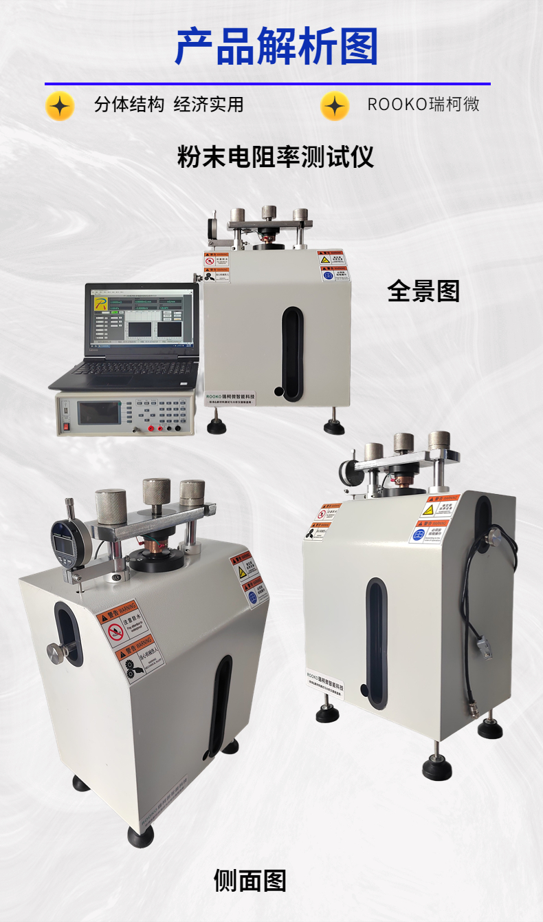 已知量的粉體,在液壓動力下壓縮體積至設定壓力值或壓強,在線測量粉體電阻、電阻率、電導率,并記錄數據.
