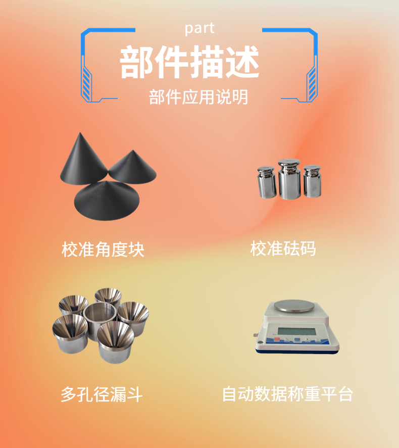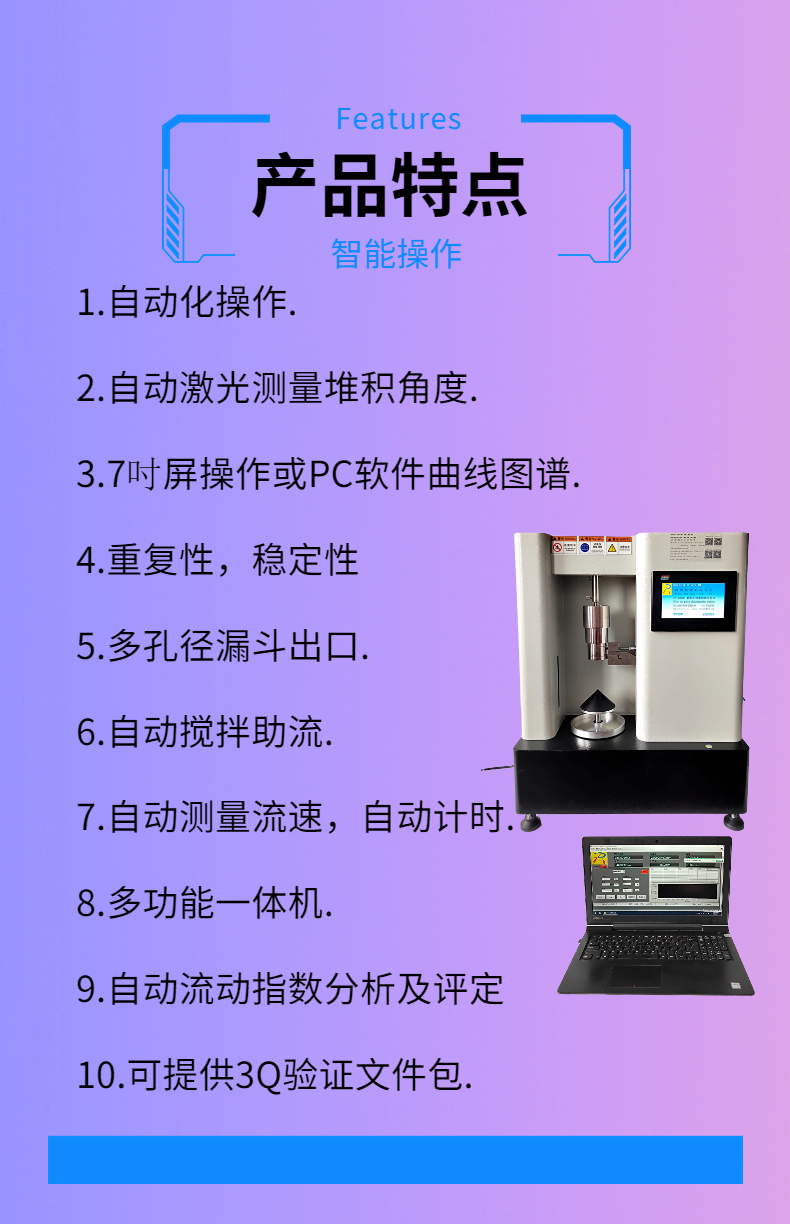 5. 多孔徑漏斗出口.能測試不同粉體流動(dòng)性.
